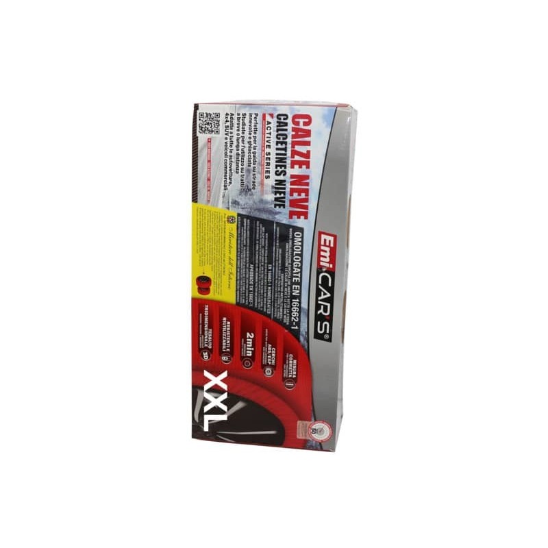 Ottima alternativa alle catene da neve in caso di urgenza. Veloci da montare. Omologate. Importante: non superare i 50 km orari. Misura: XXL. Confezione da 2 calze.