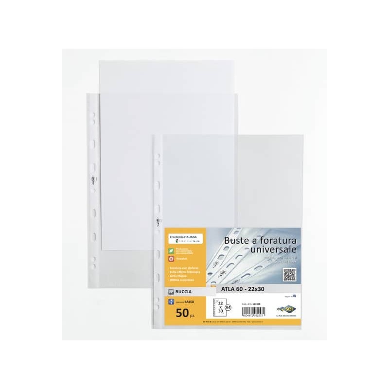 Busta in PP opaco spessore medio con foratura universale rinforzata. formato 22x30 cm, confezione 50 pezzi.