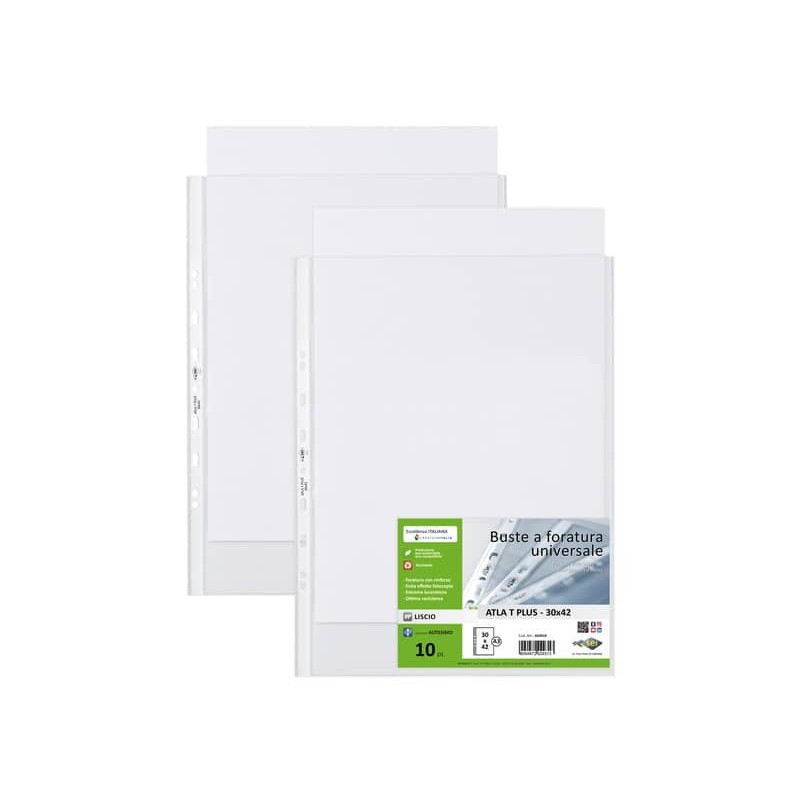 Buste in polipropilene con finitura liscia, altissimo spessore, con foratura universale rinforzata. Ideali per eleganti presentazioni o per archiviare documenti per anni. Il modo migliore per farsi notare.