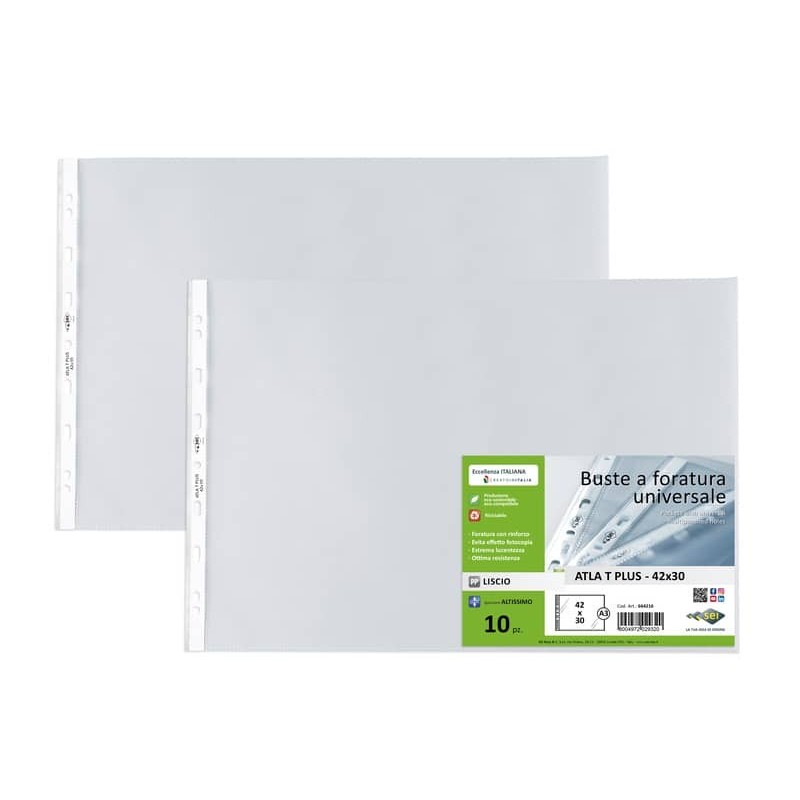 Buste in PP liscio Sei Rota Atla T Plus - altissimo spessore trasparente 42x30 cm - conf. 10 pezzi - 664216