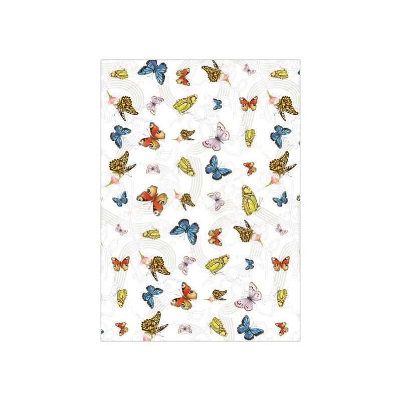 Carta regalo pregiata disponibile a fogli estesi nel formato 70 x 100 cm. Confezione da 5 fogli. Fantasia Farfalle.