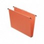 Cartella a lettura superiore per cassetti in robusto cartoncino orange kraft. Ganci di sostegno in nylon con astina in acciaio fissati alla cartella con incollatura Hot Melt. Portacartellino Scope già montato. Interasse 390 mm, fondo a 30 mm. Confezione da 50 pezzi.