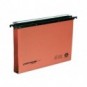 Cartelle sospese per cassetto Linea Cartesio serie 100. Interasse 39 cm. Fondo U3. Tre aste di sospensione in poliestere nero, portacartellino lenticolare 31 cm (cassetto) e 14 cm (armadio). Cartoncino kraft 240 grammi, sistema di fissaggio del cartone alla barra tramite rivetti metallici per garantire un'elevatissima resistenza. Colore arancione. Confezione da 25 pezzi.