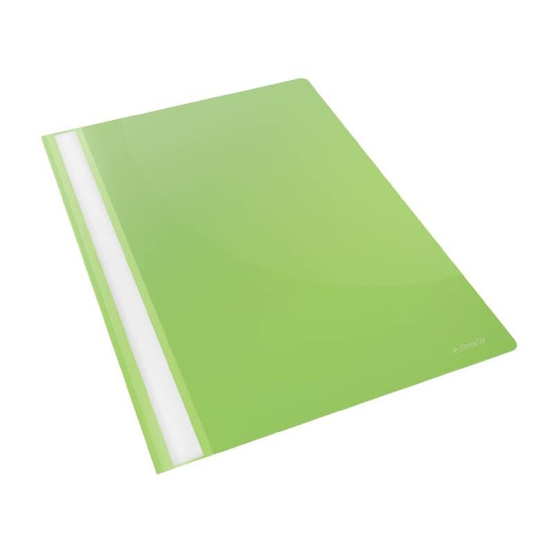Cartellina con fronte trasparente realizzata interamente in PP. Ideale per l?archiviazione di documenti forati. Etichetta longitudinale estraibile. Confezione composta da 25 cartelline, colore verde.