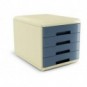Porta in ufficio o in casa i romantici colori vintage: l'azzurro della carta da zucchero, il caldo colore del caramello e il bianco cremoso del latte. Cassettiera Vintage a 4 cassetti. Dimensioni L. 29,5 x P. 38,5 x H. 28,2 cm. In resistente PPL.