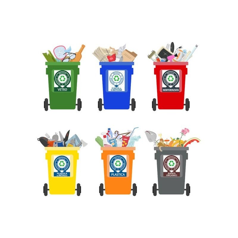 Etichette per contenitori portarifiuti raccolta differenziata TICO 114x110 mm 1 et./foglio - conf. 6 fogli KIT-OF6-IT