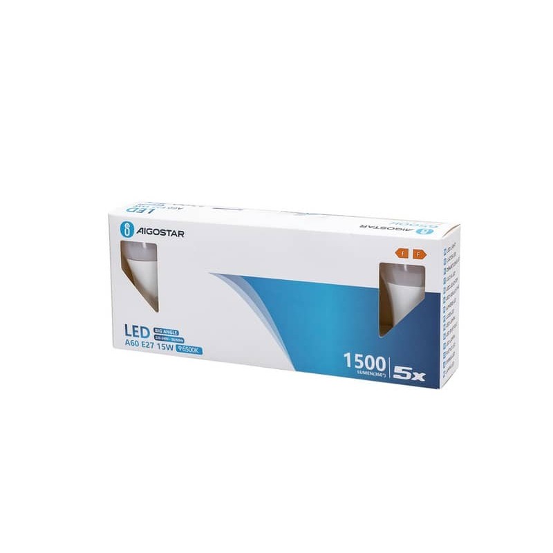 Lampadine LED Aigostar A60 E27 15W luce fredda - conf. 5 pz - 6500K 331627