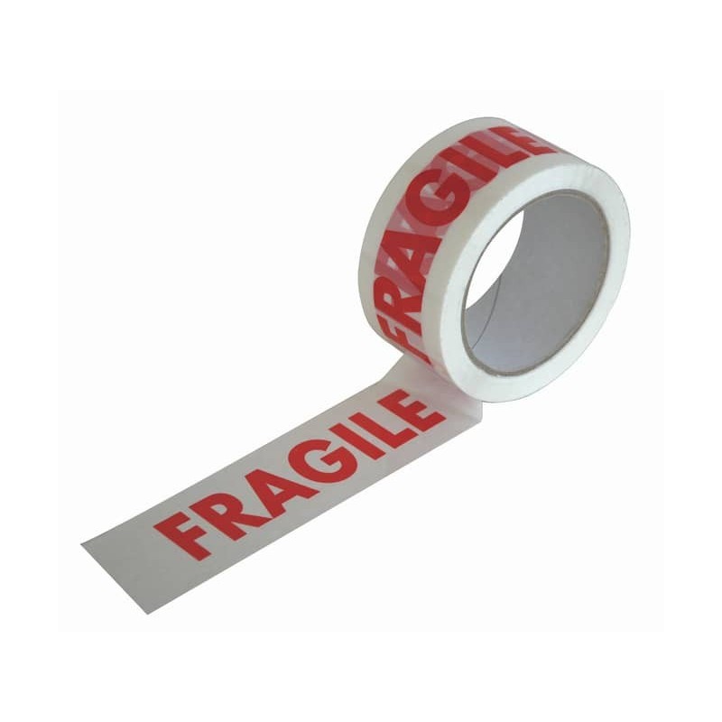 Nastro da imballo silenzioso stampa FRAGILE. Confezione da 6pz. Dimensioni: 50mmx66m. Polipropilene uniformemente spalmato con adesivo acrilico a base acquosa. Spessore: 50 micron. Colore: fondo bianco con scritta rossa. Resistenza a trazione: => 96N/25mm. Allungamento a rottura: => 150%. Adesività su acciaio: => 7.3N/25mm.