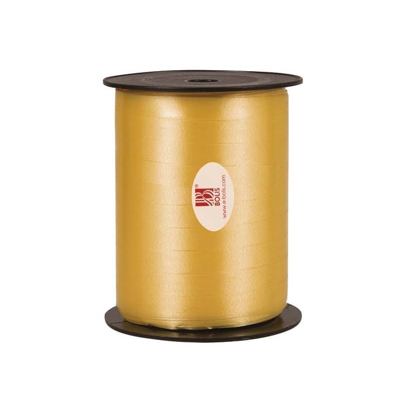 Rotolo di nastro in polipropilene. Formato: 10 mm x 250 m, colore oro.