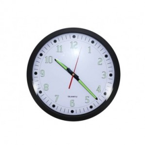 Orologio da parete con termometro, cornice e lancette in acciaio, meccanismo al quarzo, quadrante con minuti funzionamento con 1 batteria stilo alkalina AA (non inclusa), Diametro Ø 30,3 cm, Spessore 4,5 cm, assolutamente silenzioso. Colore nero.