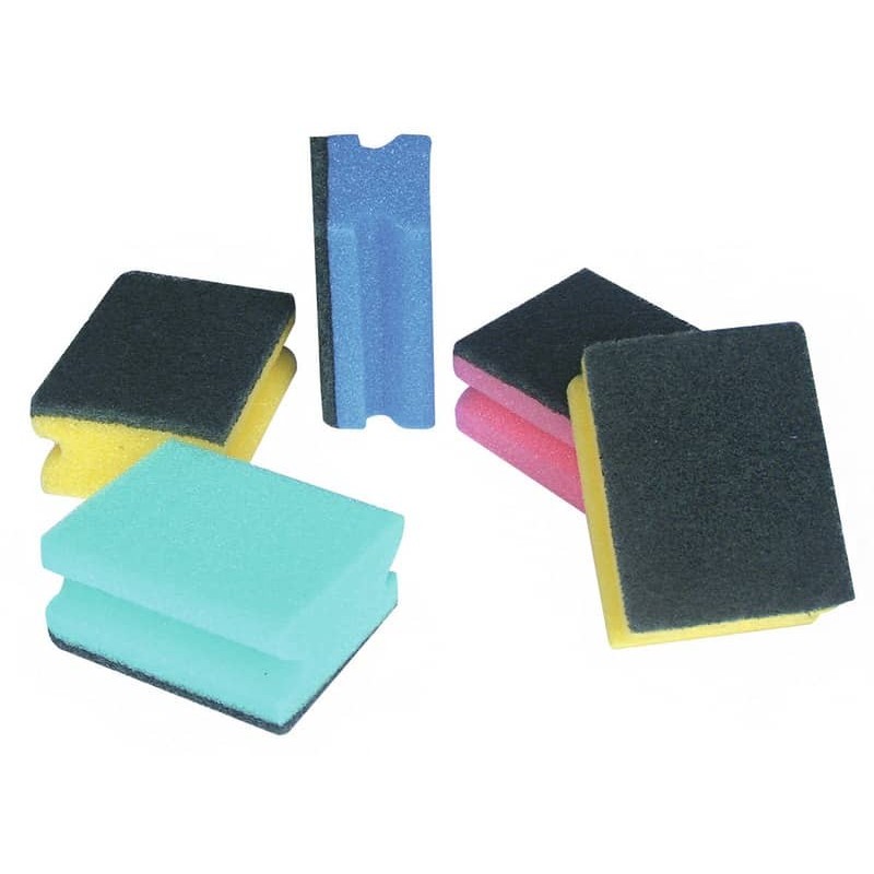 Set da 5 spugne abrasive con impugnatura salvaunghie. Con fibra abrasiva per la pulizia profonda di superfici non delicate. Spugna assorbente per rimuovere residui di unto e grasso. Componenti: poliuretano espanso. Parte abrasiva in fibre di nylon e poliestere trattate con resine e minerali. Dimensioni: 7,5 x 6 x 4 cm.