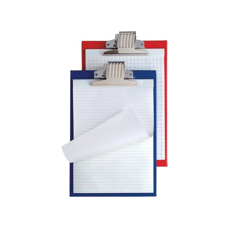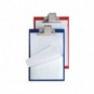 Porta blocco semplici in Colpan® (cartone rivestito in PVC), con mollettone ad alta capacità per contenere fino ad un massimo di 300 fogli di carta. Foro per appendere. Per scrivere appunti riciclando carta.