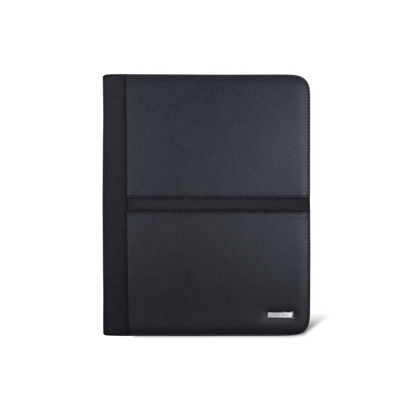 Portablocco ad anelli in sintetico morbido con cerniera, varie tasche interne portaoggetti, diametro anelli 3cm, completo di blocco. Colore nero, formato 29x36 cm.