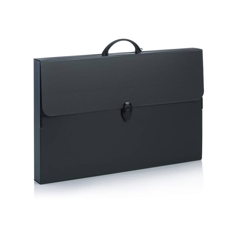 Valigetta Every Line Total Black in polipropilene alveolare nero. Ideale per riporre e trasportare comodamente documenti, disegni, progetti e righe lunghe fino a 60 cm. Completa di film protettivo, maniglia e due pratiche chiusure a scatto. Formato 56,5(L)x36,5(H) dorso 5,5 cm. Colore nero.