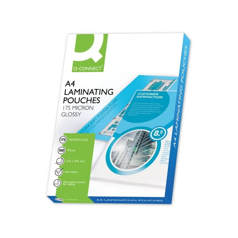 Pouches per plastificatrici Q-Connect 216x303 mm lucide A4 conf. 100 pz 175 micron - KF11342