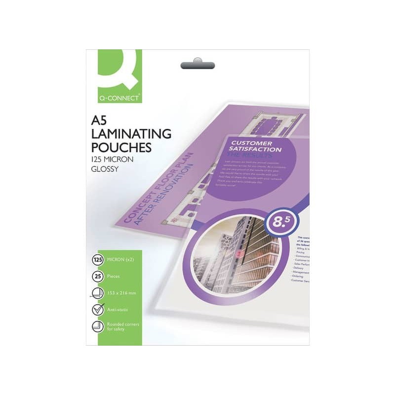 Pouches per plastificatrici Q-Connect 153x216 mm 125 micron A5 conf. 25 pz A5 KF04112