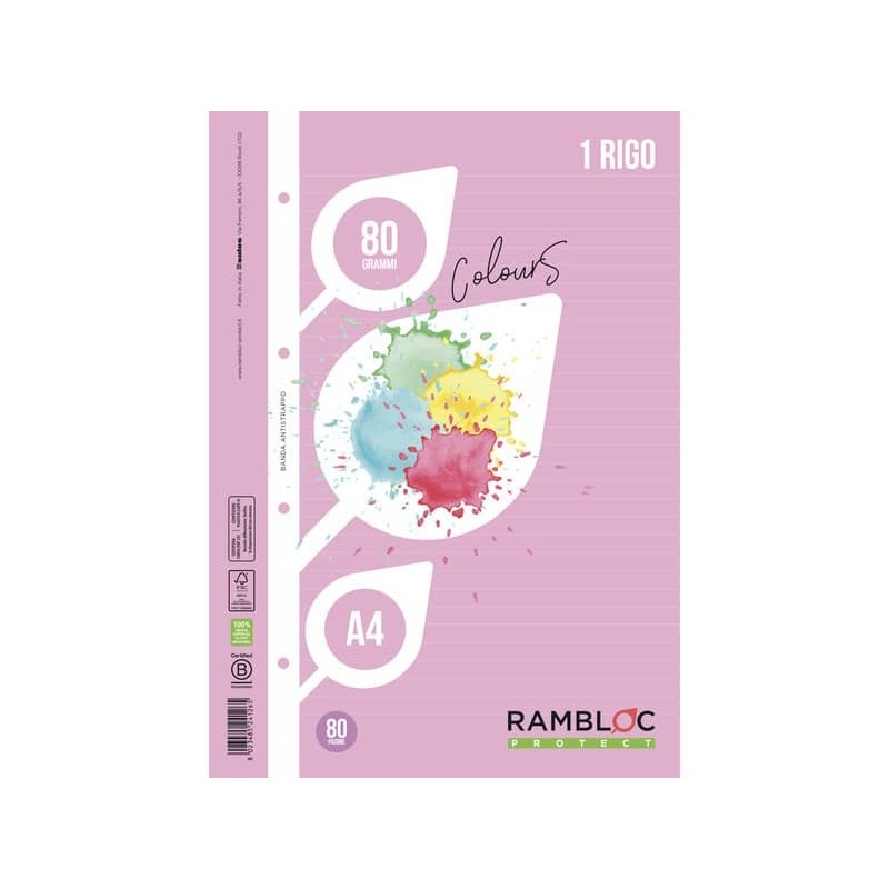 Ricambio rinforzato quaderni ad anelli Rambloc formato A4 colore rosa - 1R - 90524126