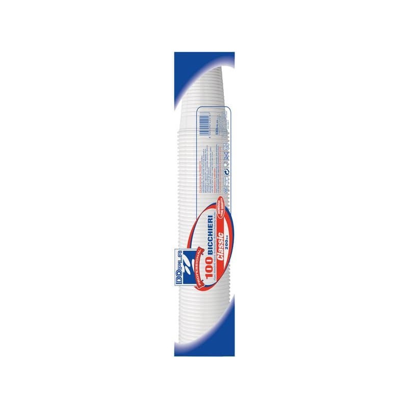 Bicchieri monouso Dopla 200 ml in polistirene bianco conf. 100 pezzi - 22639