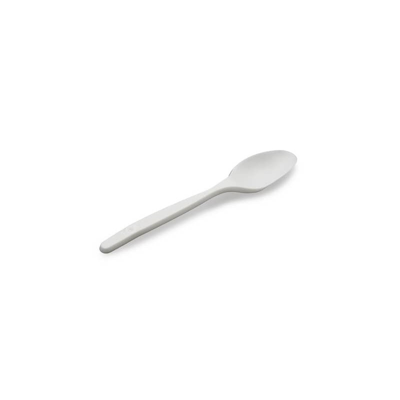 Cucchiaini da dessert bianchi in CPLA, confezione da 40pz. Idoneo al contatto con alimenti. Il prodotto non può essere utilizzato in forno a microonde. Idoneo a venire al contatto con alimenti a base acquosa, acida e grassa a temperatura ambiente o inferiore per periodi di tempo prolungati e alla temperatura massima di 70°C per tempi inferiori a 2h.
