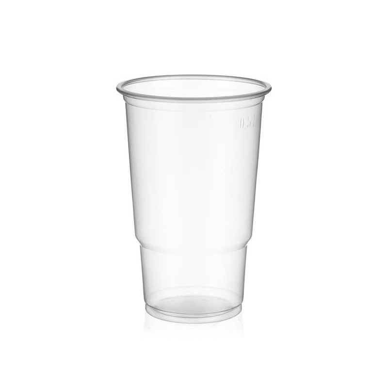 Bicchieri in polipropilene 615 ml trasparente. Confezione da 50 pezzi. Marcato Ideale per birra. Diametro superiore: 95 mm. Contatto con alimenti: Max 90 °C per 15'. Microonde Max 500 Watt per 2'. No grill.
