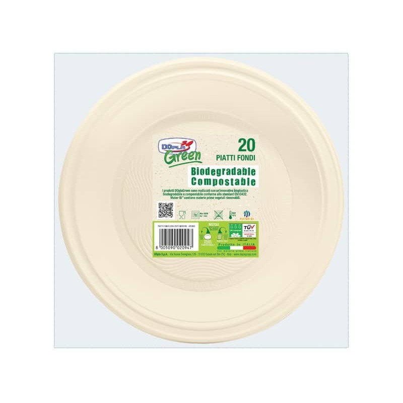 Piatti fondi in Mater-BI Dopla Green avorio conf. 20 pz fondi Ø 205 mm 11797