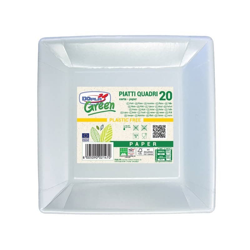 Piatti quadrati Dopla Green in carta Bi fibra vergine conf. 20 pz. Bianco quadrati 185x185 mm - 11805