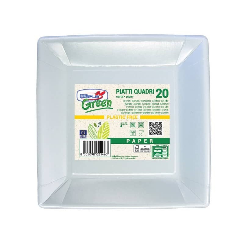 Piatti quadrati Dopla Green in carta Bi fibra vergine conf. 20 pz quadrati 250x250 mm - 11804