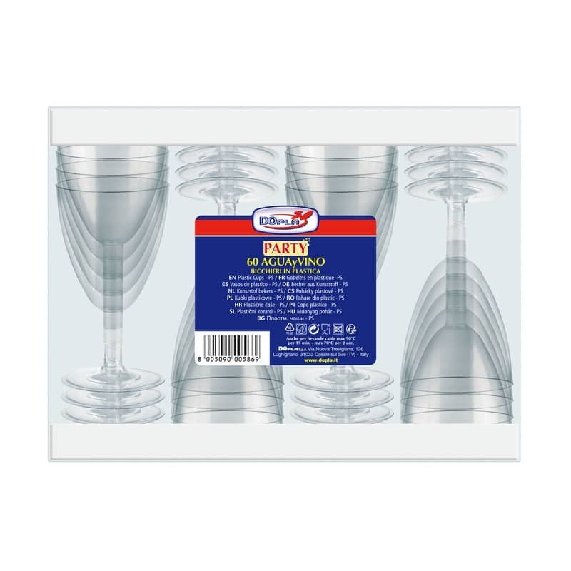 Bicchieri Dopla acqua/vino in poliestere trasparente - 180 ml - conf. 60 pezzi - 22020