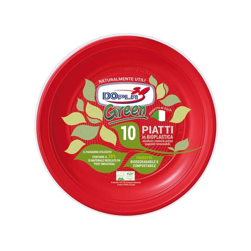 Piatti in mater-bi Dopla Green Ø170 mm rossi frutta - conf. 10 pz - 45022