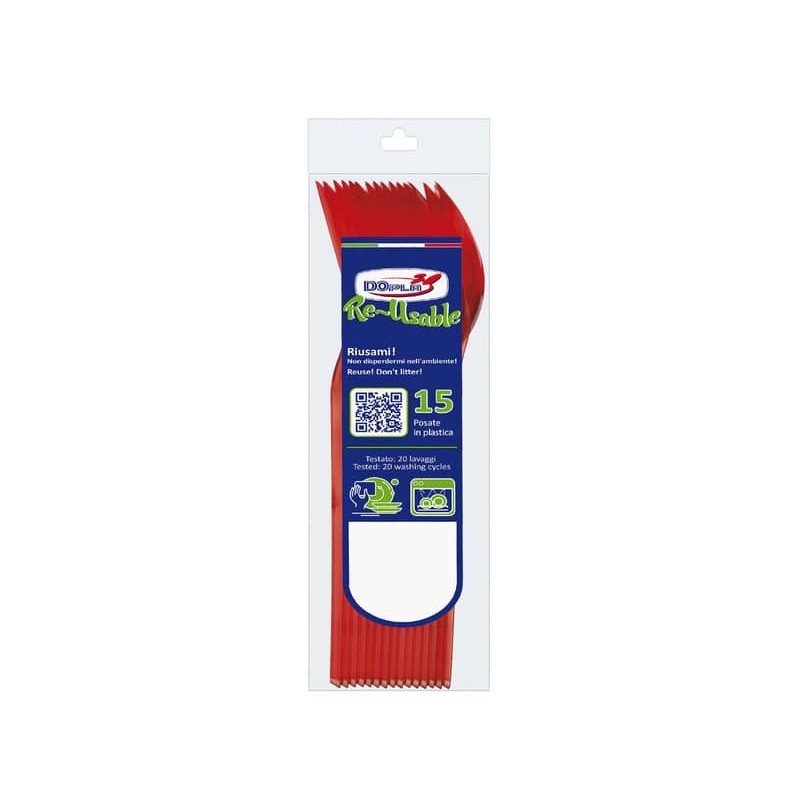 Cucchiai compact in polistirene Dopla Reusable 180 mm conf. 15 pz rosso 03955
