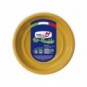 Piatti piani in polistirene. Colore: oro. Diametro: 220 mm. Altezza: 19 mm. Peso netto unitario: 13 grammi. Idonei al contatto con alimenti fino a max 90° C per 15 minuti. Non utilizzabili in forno. Prodotti riutilizzabili. Testato 20 lavaggi in lavastoviglie. Confezione da 25 pezzi.