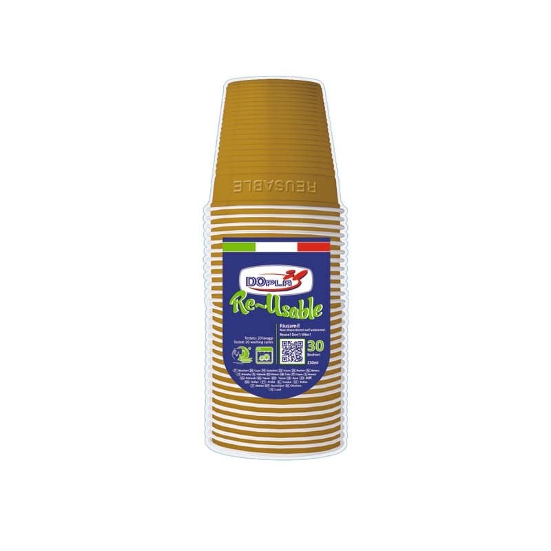 Bicchieri in polistirene Dopla Reusable oro conf. 30 pz 230 ml 22713